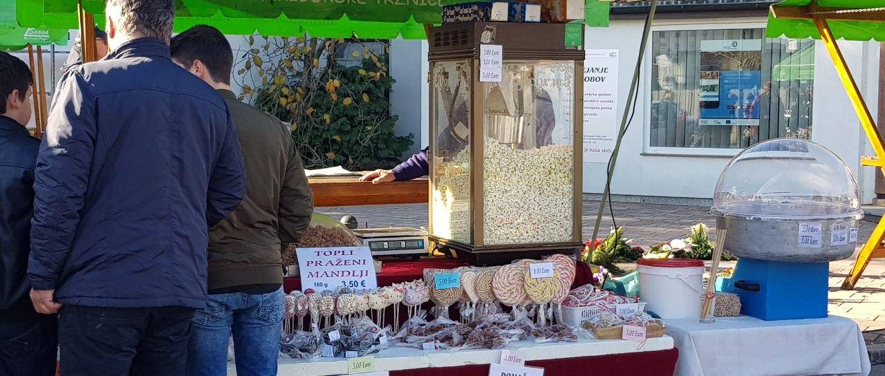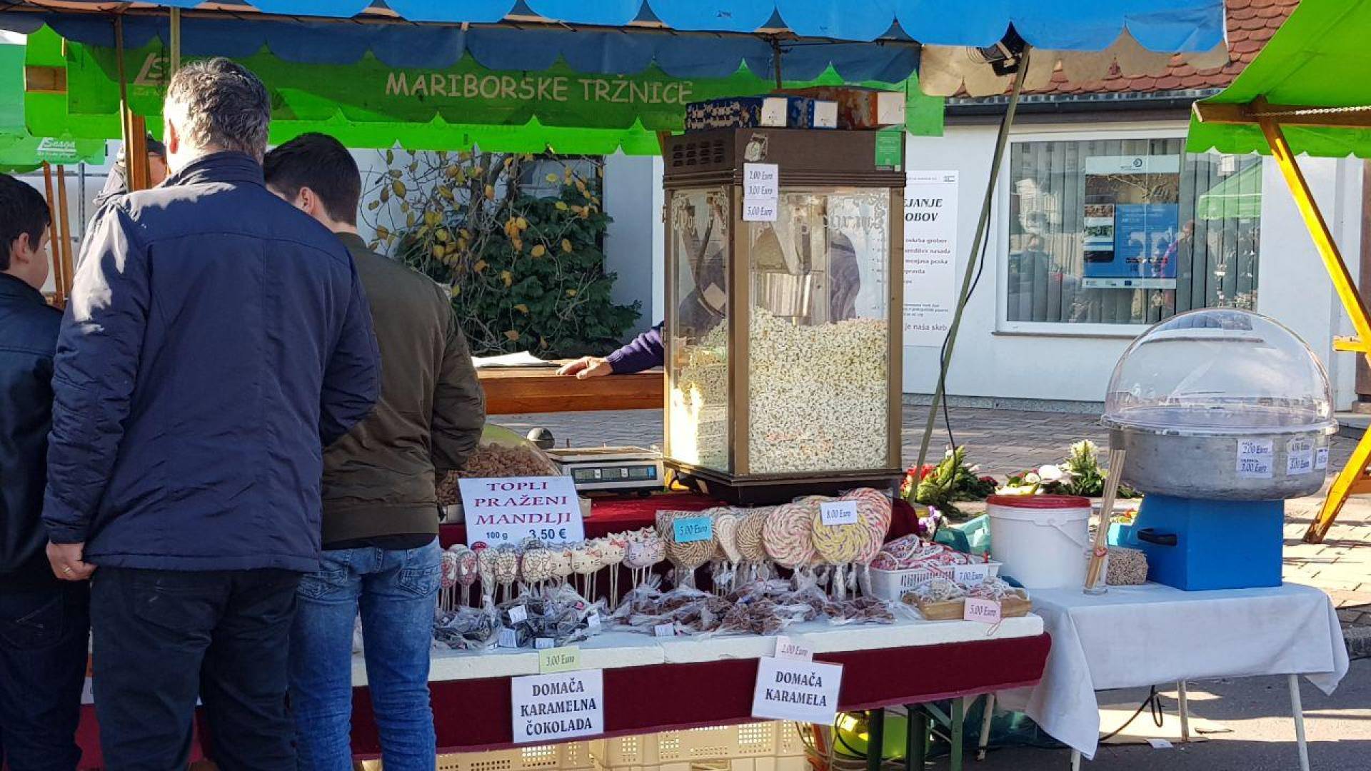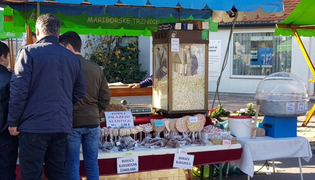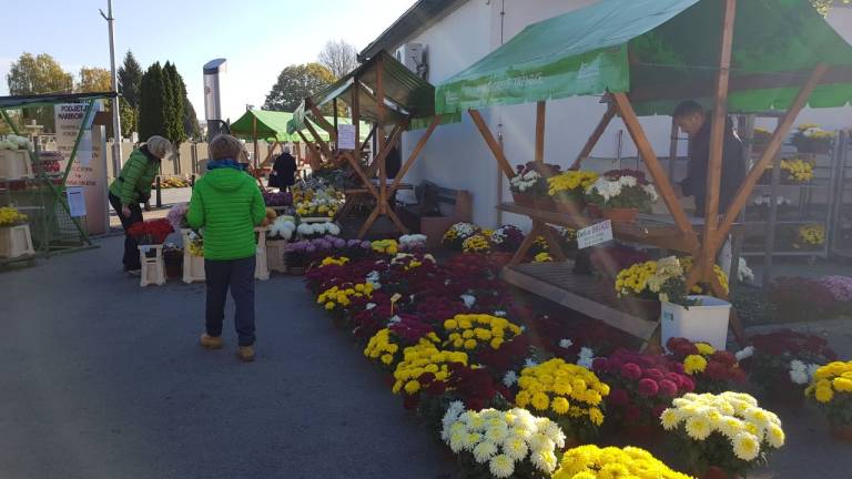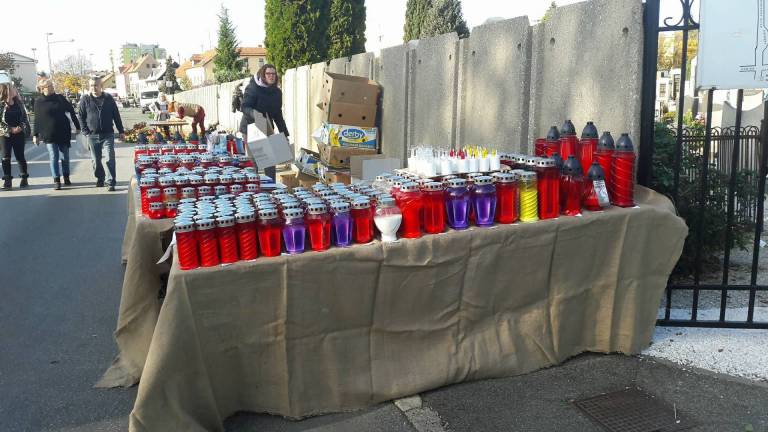 Tudi na pokopališčih v Mariboru poleg sveč in cvetja lahko kupite še kaj sladkega za pod zob. Na policah bodo sveče in ikebane že jutri zamenjali Rudolfi in novoletne lučke.