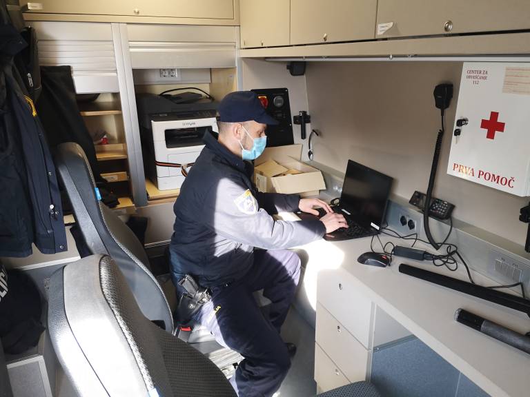 »Tu v samem avtomobilu vzamemo kakršno koli prijavo od občana, dejansko jo že napišemo na računalnik, sprintamo,« nadaljuje Felbar. In delo se lahko nadaljuje.