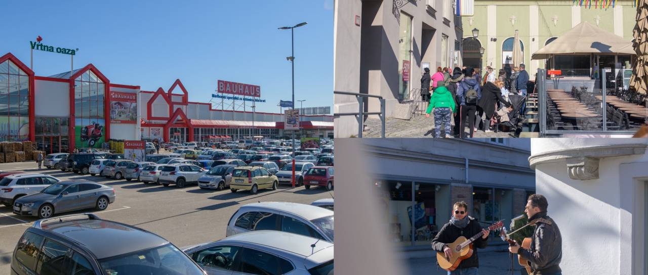 Pred vsemi večjimi trgovinami v Mariboru se danes vijejo vrste ljudi, ki čakajo na vstop v trgovino. Prazen prostor na parkiriščih pa je težko najti.