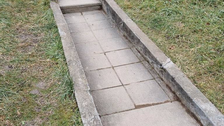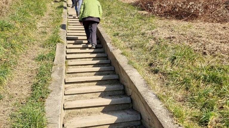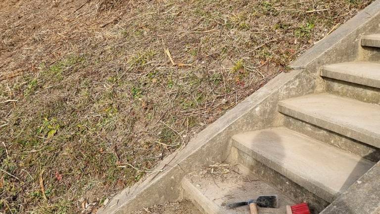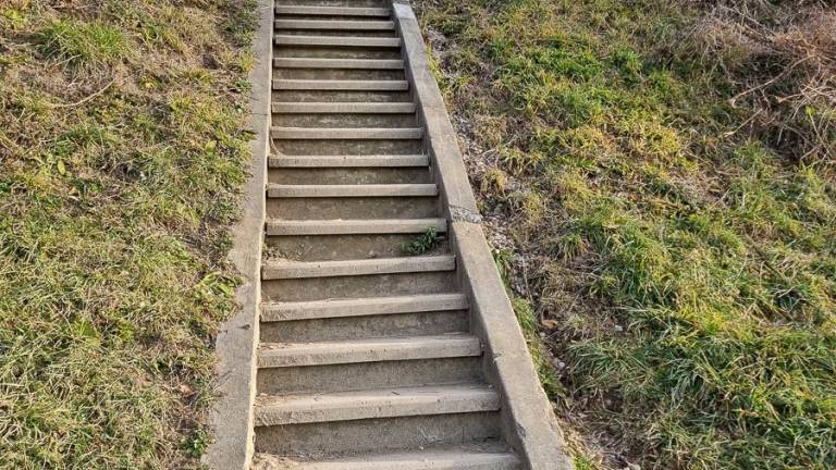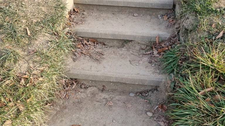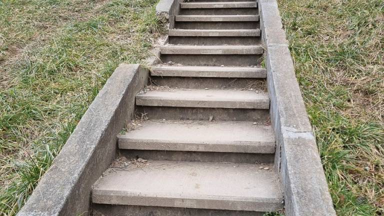 Ena izmed stopnic na srednjem delu stopnišča pa je zrahljana in bi jo bilo treba čim prej pričvrstiti nazaj.«