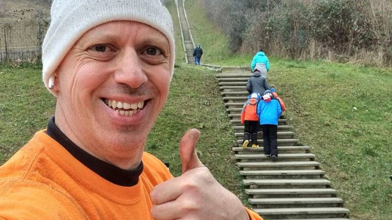 Najprej se je lotil čiščenja spodnje tretjine stopnic, kar je zaključil prvi dan. Naslednji dan je očistil zgornjo tretjino.