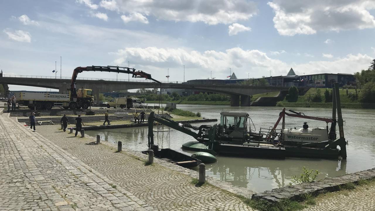 Po podpisu pogodbe za izvedbo stalnega odra na Dravi so delavci v teh dneh že začeli s postavljanjem.