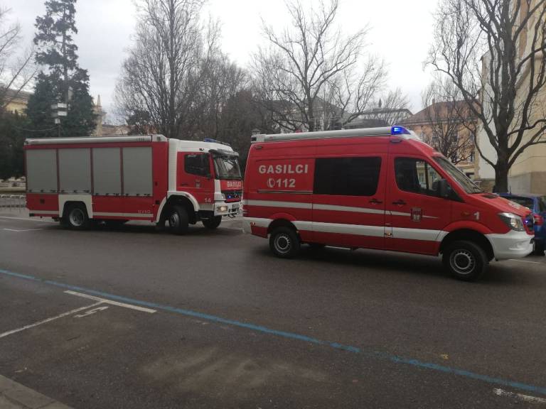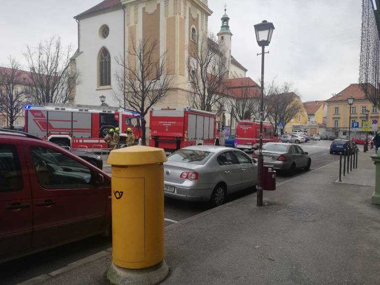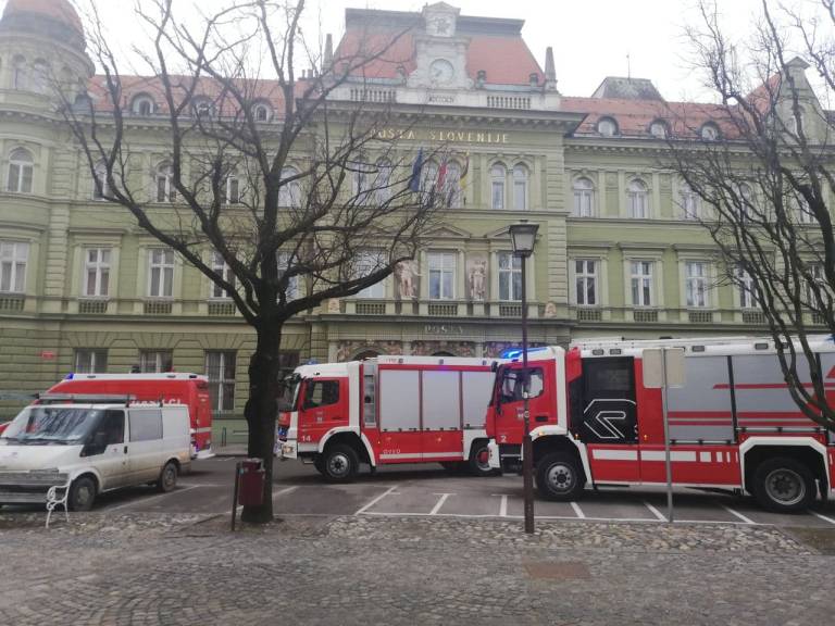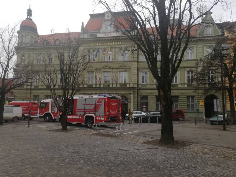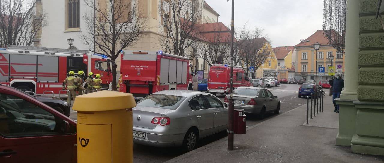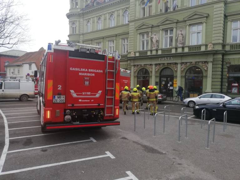 Pred pošto na Slomškovem trgu smo opazili večje število mariborskih gasilcev, gasilskih kombijev in policistov. Kaj se dogaja?