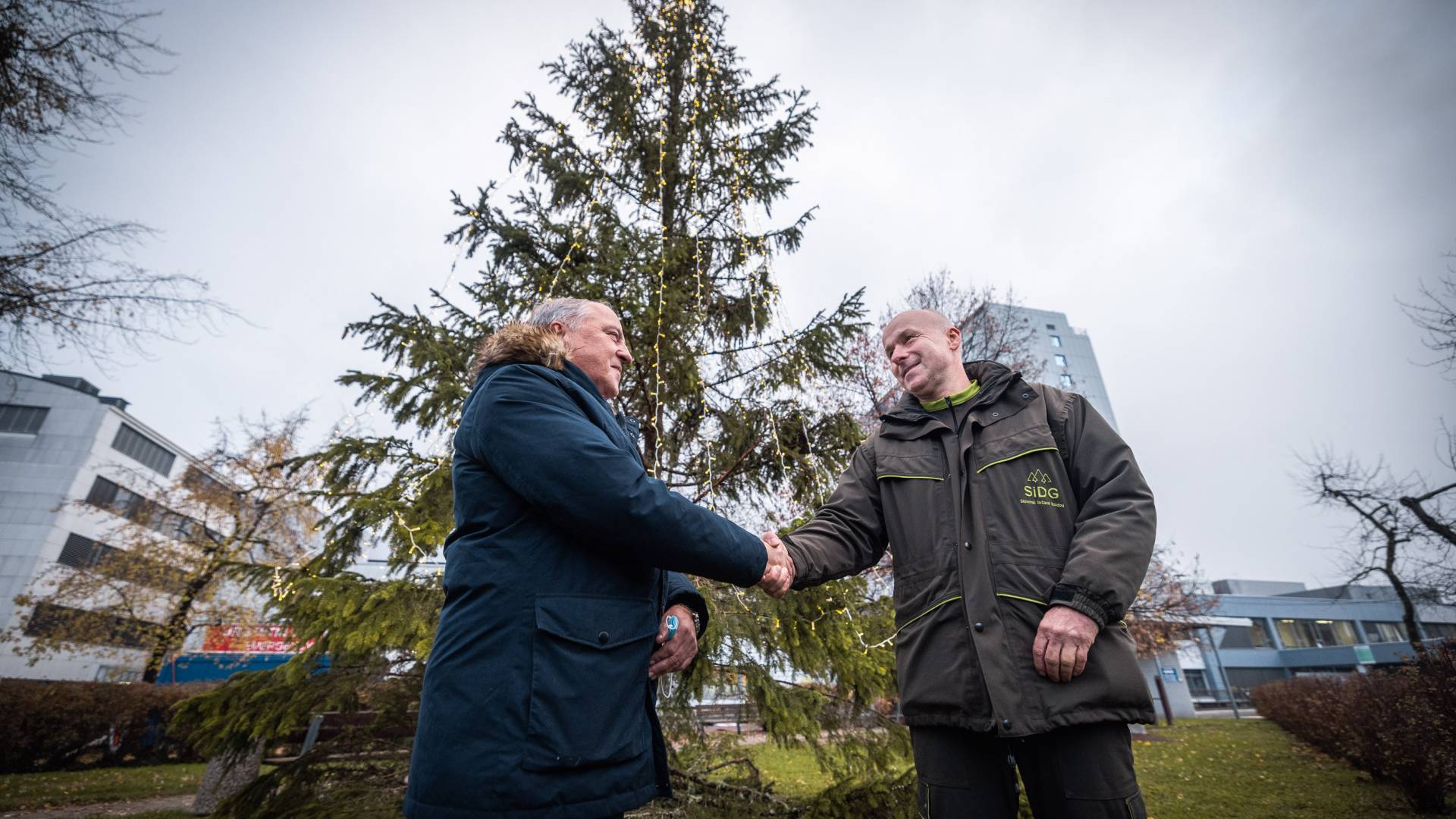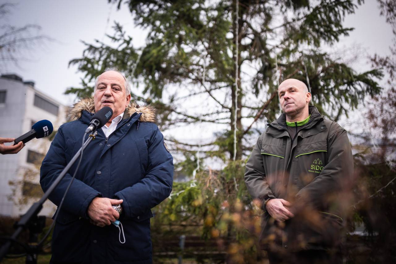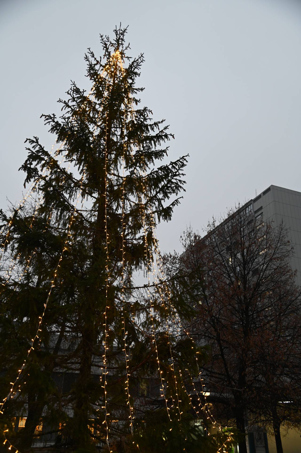Luči na velikem božičnem drevesu sta prižgala direktor Univerzitetnega kliničnega centra Maribor Anton Crnjac in Roman Jerman, vodja poslovne enote Maribor Slovenskih državnih gozdov.