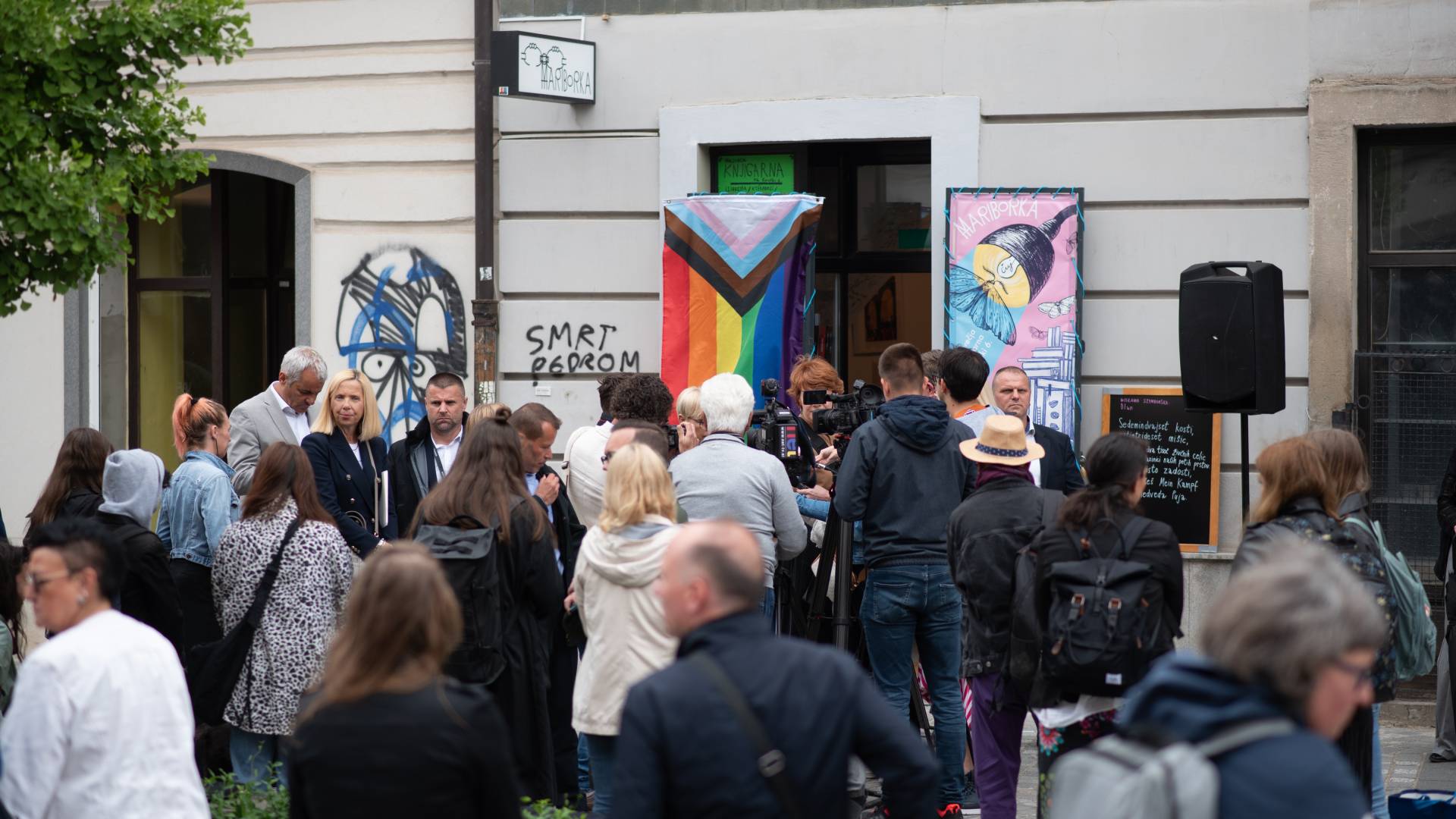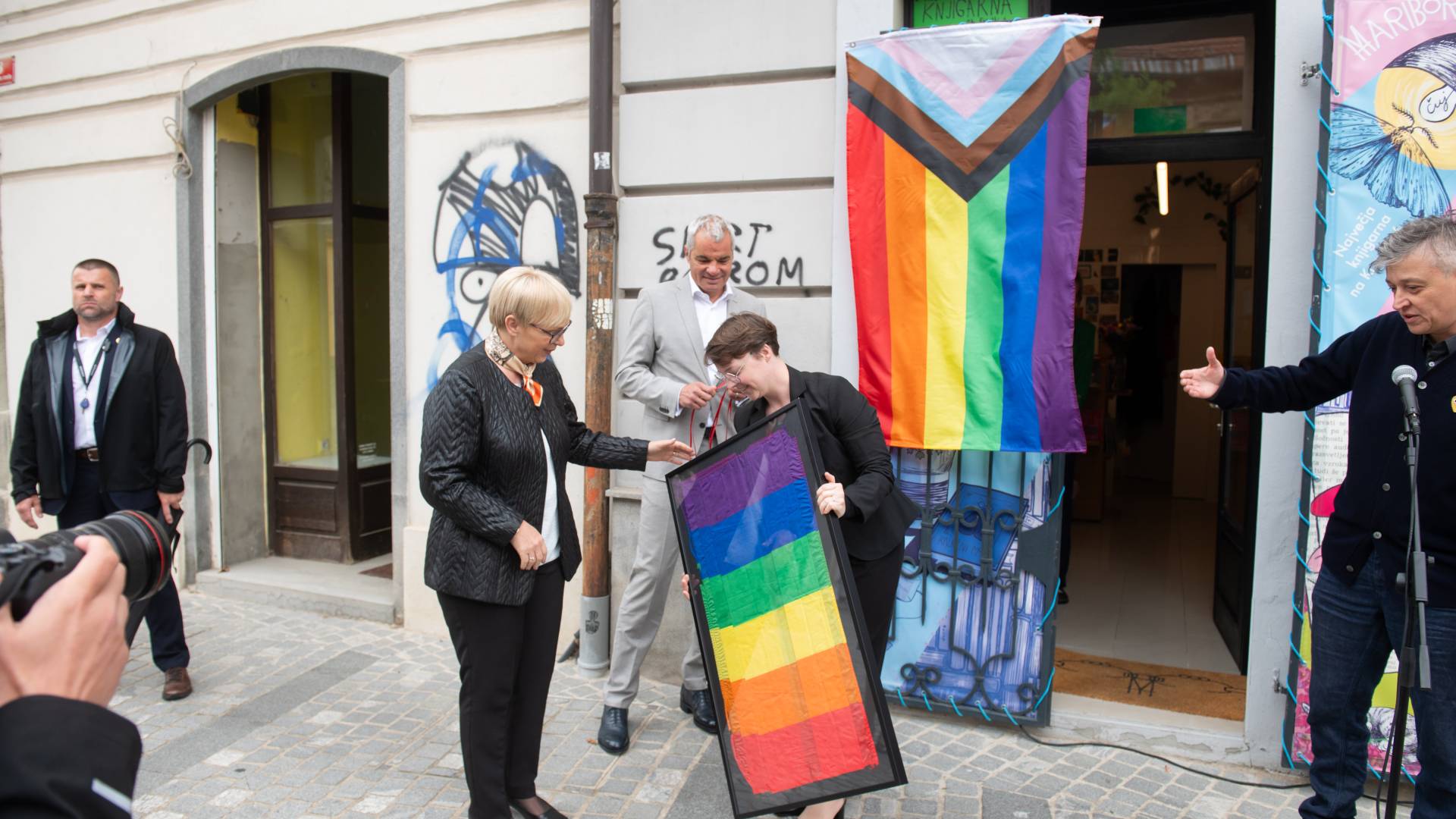 Pred knjigarno Mariborka je potekal dvig mavrične zastave, ki se ga je udeležila tudi predsednica Pirc Musar, ki pravi, da knjigarna Mariborka prostor odprtih misli, je prostor sproščenega duha, je prostor svobode izražanja.