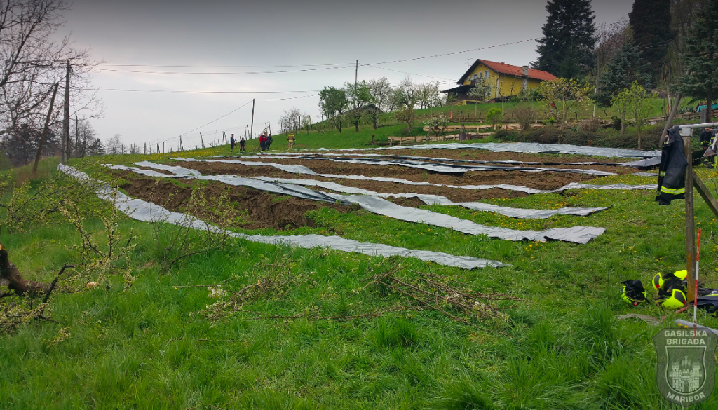 Gasilci Gasilske brigade Maribor in Prostovoljnega gasilskega društva Malečnik so s folijo prekrili zemeljski plaz v izmeri 60 krat 50 metrov.