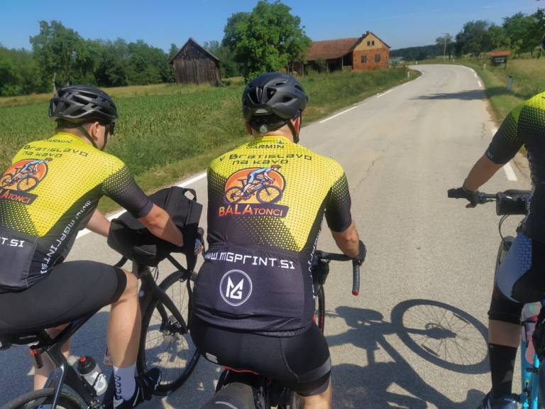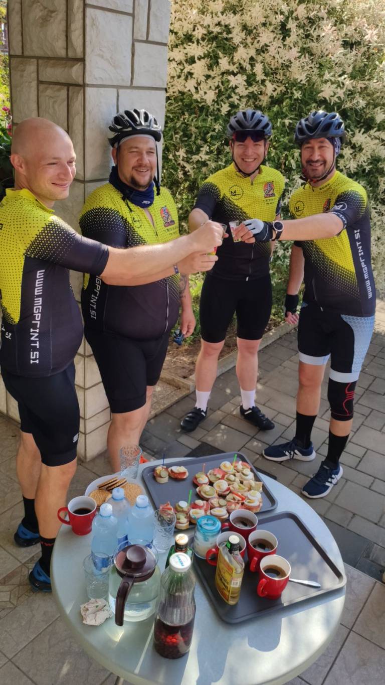 »Po zaužitvi obloženih kruhkov, spite vode, kave in na koncu še nazdravljanje s »sveto« vodo za pogum smo krenili proti Madžarski, kjer smo tudi po prekolesarjenih 120 kilometrih prvič prespali.«