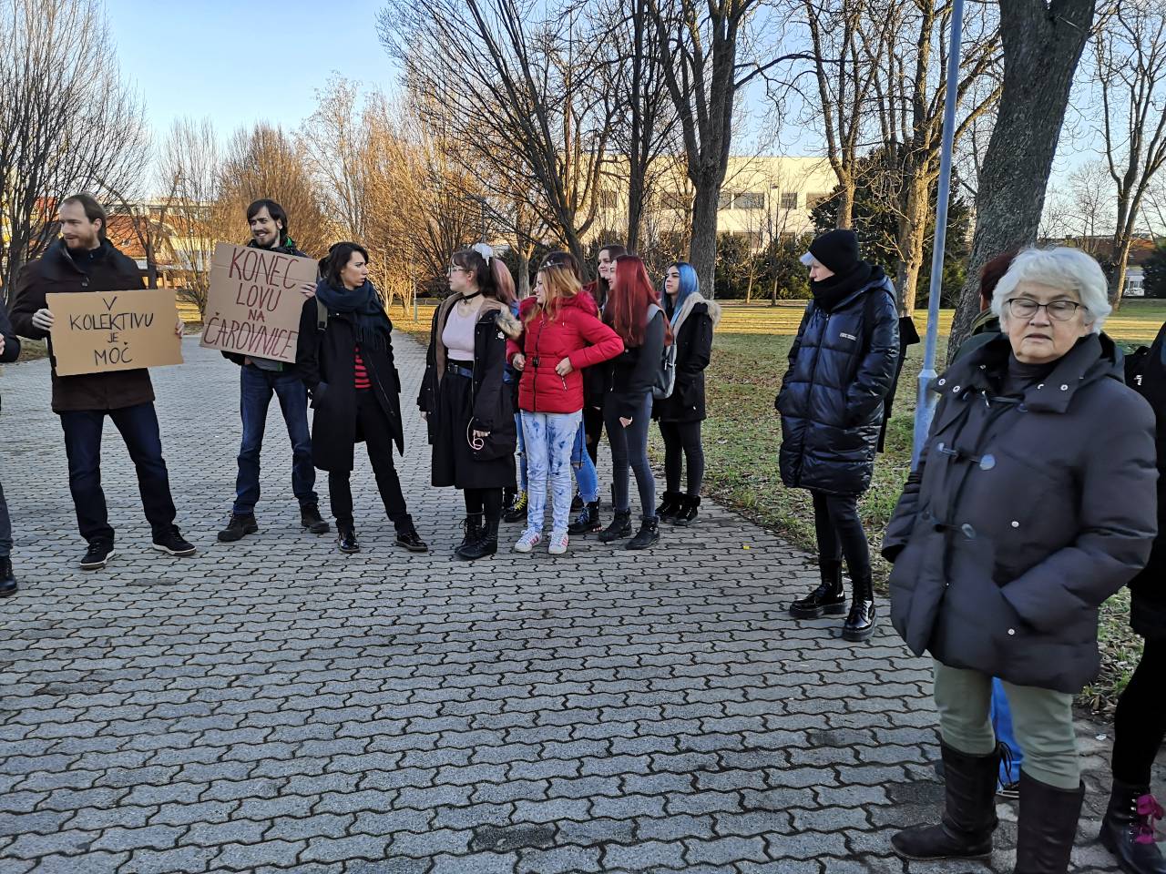 Kdo je naslenji? Konec lovu na čarovnice! Cvetke ne damo! S temi in drugimi napisi, pa tudi z ovenelim cvetjem v rokah, so podporniki pred šolo od zgodnjih jutranjih ur opozarjali na krivico, ki se dogaja za sivimi stenami te stavbe.