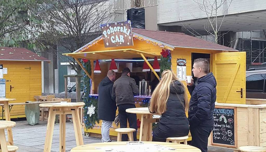 Seveda na stojnicah ne manjka tudi čaja z rumom ali jegrom, špricerja in drugih žganih pijač. Vsekakor pa ne sme manjkati kuhano vino z okusom po jabolčnem zavitku, svoj sortiman predstavi Nikolina Cunalic iz stojnice Pohorski car.