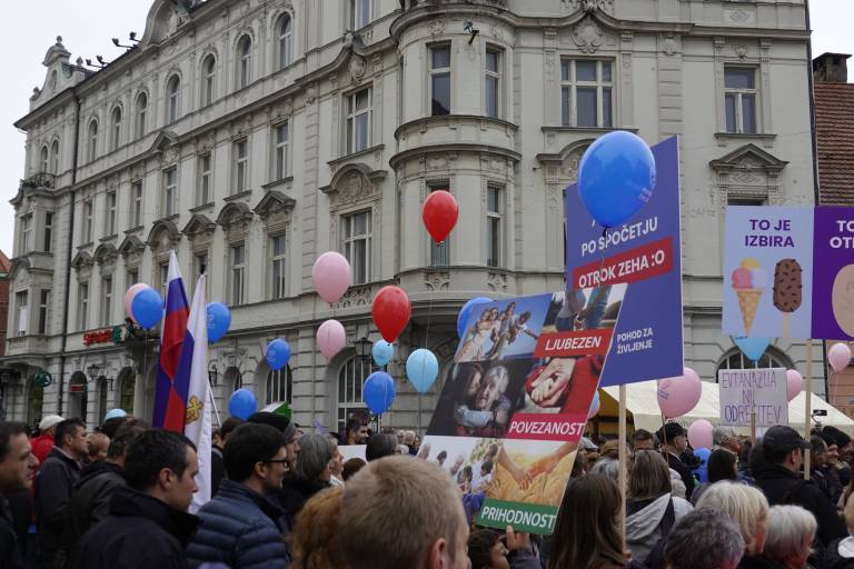 Zagovorniki pravic nerojenih otrok in njihovih staršev v stiski so se danes v Mariboru na Grajskem trgu prvič zbrali na Pohodu za življenje pod geslom 'Življenje je zakon'.