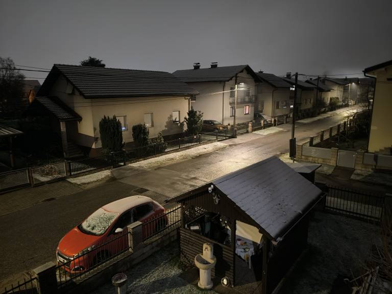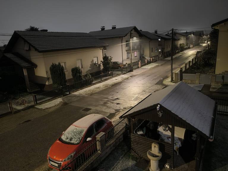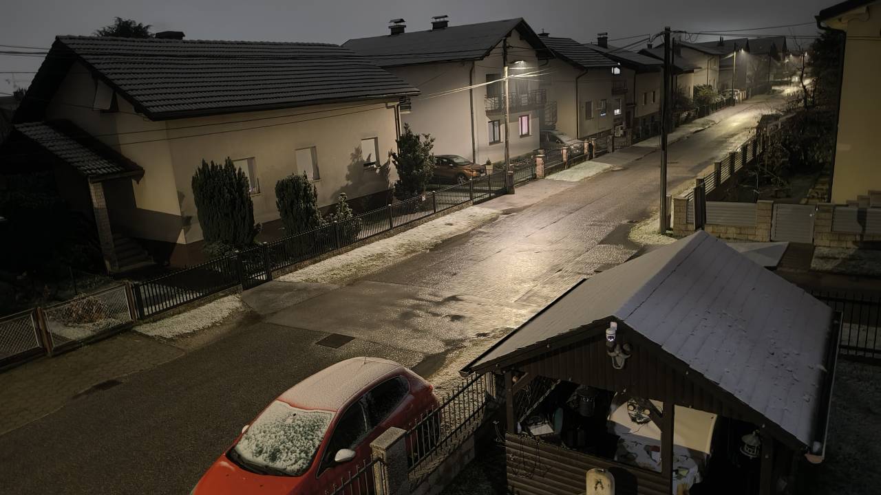 Čeprav je sneg komaj opazen, je nežno prekril hiše, ulice in avtomobile, mestu pa dodal prav poseben zimski pridih.
