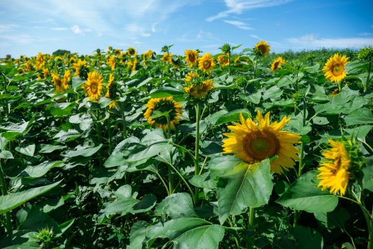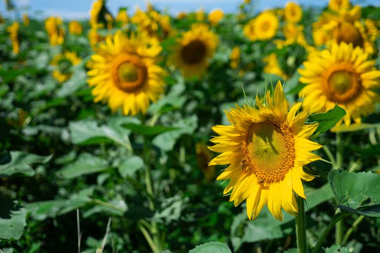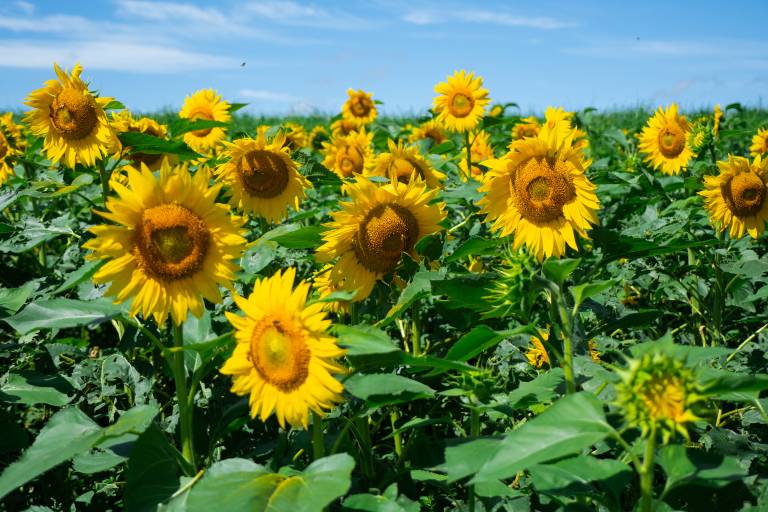 Nasadi sončnic, vse do koder seže pogled … morda pa si omislimo le steblo, dve v vrtu ali pa ‒ če nam je tako ljubše ‒ jih uporabimo kot rezano cvetje v vazi in poskrbimo za odlično vzdušje v našem domu.