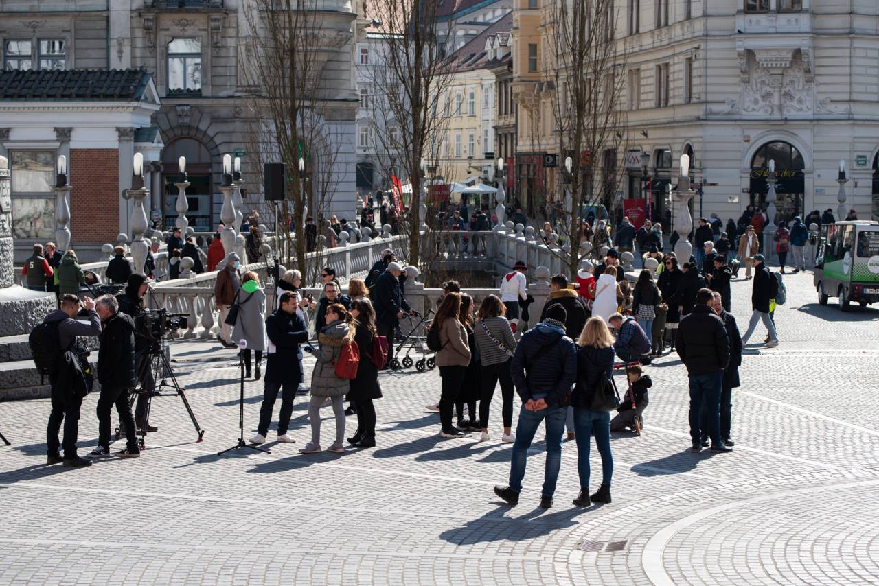 Ker je sporočilo slovenske himne, da naj med narodi vlada medsebojno spoštovanje in prijateljstvo, se je shod začel na Prešernovem trgu.