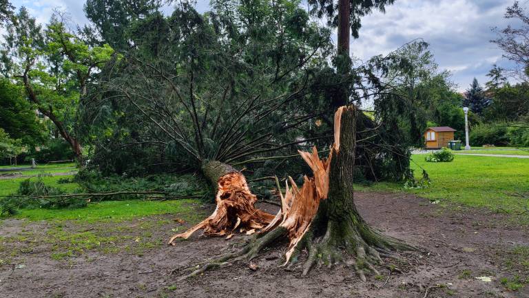 Posledice nočnega neurja bodo še dolgo opazne tudi v mariborskem Mestnem parku. Silovit veter je izruval najmanj osem dreves, še veliko pa jih polomil. Občina opozarja, naj se občani danes parku izogibajo.