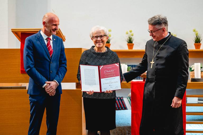 Plaketo Primoža Trubarja je letos za zasluge pri napredku cerkvenega delovanja in življenja na znanstvenem področju prejela Fanika Krajnc Vrečko.