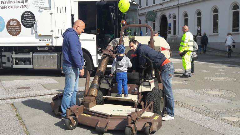 Z najnovejšimi smetarskimi vozili, katerih posebnost so okolju prijazna pogonska sredstva, so pokazali tudi prakso praznjenja posod, v vožnji in praznjenju pa so se lahko preizkusili tudi obiskovalci sami.