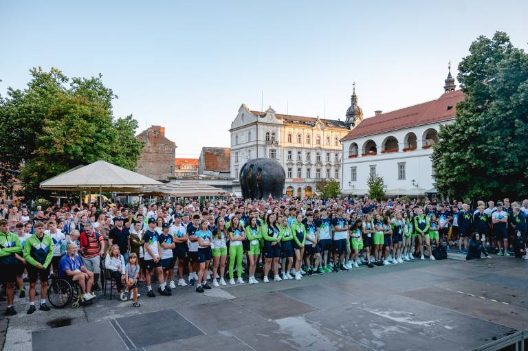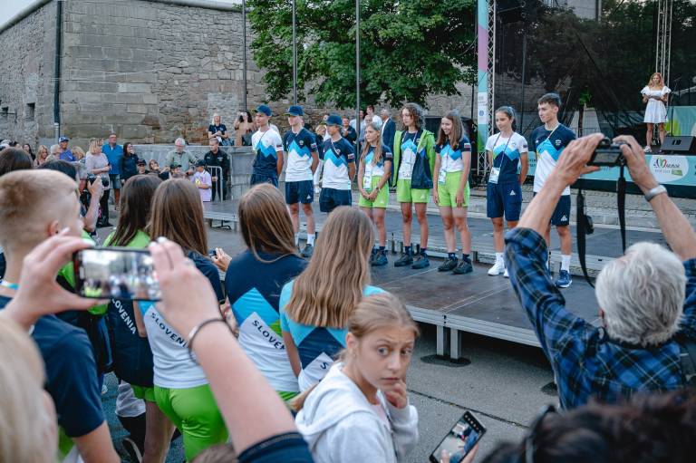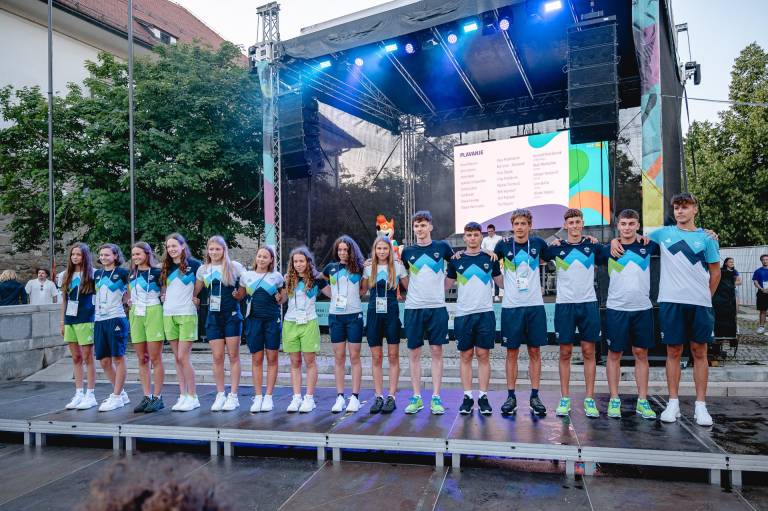 Slovenska reprezentanca, ki je največja doslej, se je javnosti predstavila na Trgu svobode. Za slovenske mladince bomo lahko navijali v vseh 11 športnih panogah – atletiki, cestnem kolesarstvu, gorskem kolesarstvu, rokometu, judu, plavanju, tenisu, odbojki, rolkanju, ritmični gimnastiki in košarki 3x3.