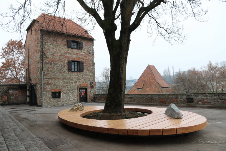 Četrta klop, poimenovana »Ženska klop«, je delo akademske kiparke Metke Kavčič in je postavljena pred Sodnim stolpom.