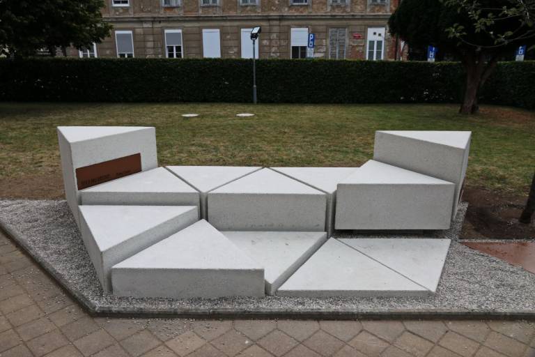 Avtor devete unikatne klopi je arhitekt, urbanist, esejist in kulturni delavec ter predavatelj Janko Rožič, ogledate pa si jo lahko na Židovskem trgu.