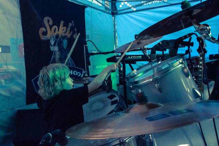 Znani mariborski bobnar Marko Soršak - Soki, ki je septembra lani odprl Sokijevo bobnarsko šolo, je ta teden staršem pokazal znanje, ki so si ga učenci pridobili tekom leta. Na terasi E-kafeja je skupaj s svojo bobnarsko ekipo priredil dva prava bobnarska koncerta, na katerih se je zvrstilo 40 njegovih učencev.