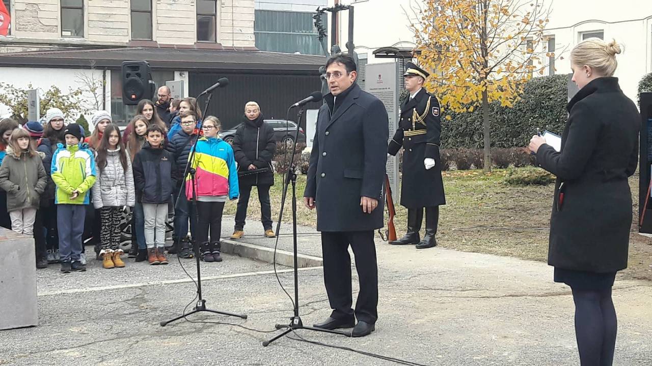 Ob tem pa dodal, da se tovrstna zgodovinska dejstva ne smejo pozabiti, saj 75 let ni tako daleč, kot bi se morda zdelo. Tako je opozoril tudi na pomembno vlogo Rdeče armade za našo osvoboditev: »Hvaležni moramo biti slehernemu zavezniškemu vojaku, ki je poskrbel, da smo danes lahko svobodni in o teh grozodejstvih govorimo v kontekstu zgodovine. Želim si, da bi ta svoboden spomenik marsikateremu mlademu človeku odprl oči in pokazal, da so se naši dedje še ne tako dolgo nazaj morali boriti za nekaj, čemur pravimo svoboda in se danes zdi čisto samoumevna«.