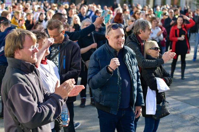 »Opravljamo naloge varovanja življenja in premoženja ljudi, preprečujemo kršitve javnega reda in miru, nadziramo pa tudi spoštovanje veljavnih odlokov za preprečevanje širjenja nalezljive bolezni,« so o današnjem shodu povedali na Policijski upravi Maribor.