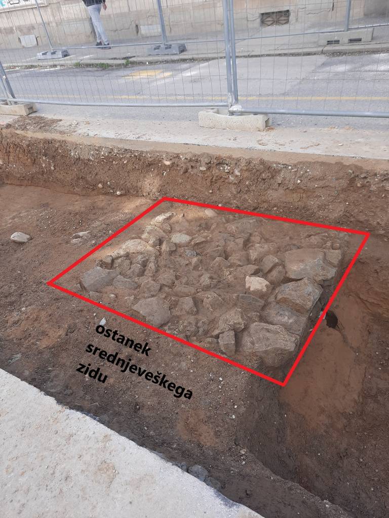 Na Orožnovi ulici so med arheološkim spremljanjem naleteli na dobro ohranjen srednjeveški zid, ki priča o nekdanji pozidavi tega območja. Zid je zgrajen iz kamna in je del urbanega razvoja mesta, ki sega v srednji vek.