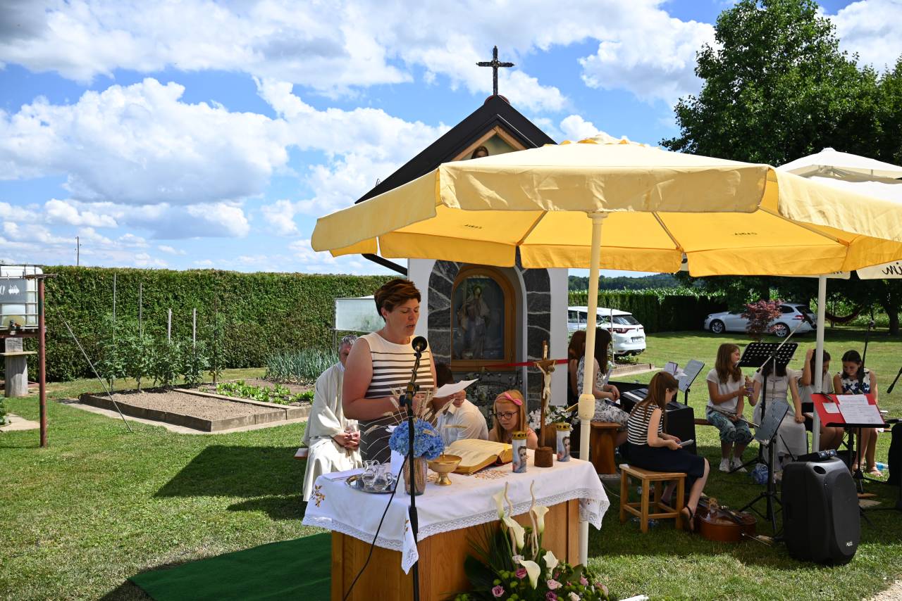 Na začetku svete maše, ob novi kapelici je v imenu družine vse zbrane pozdravila Tanja Pihlar. Dogodek se je nadaljeval z mašo, ki jo je daroval župnik ljutomerske župnije Goran Merica.