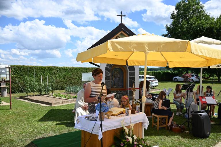 Mašo je s cerkvenim petjem obogatila pevska skupina Luč iz župnije Ljutomer. Tanja Pihlar se je nato zahvalila vsem navzočim in tistim, ki so kakorkoli pomagali pri gradnji kapelice.