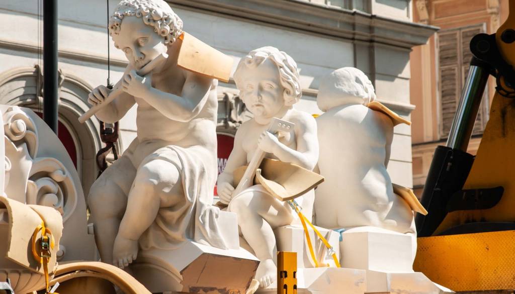 Originalne skulpture treh muzicirajočih dečkov in dve vazi ter sredinski relief so strokovnjaki Zavoda za varstvo kulturne dediščine Slovenije in njihovega restavratorskega centra že konec aprila namestili v foyerju pred Kazinsko dvorano Slovenskega narodnega gledališča Maribor.