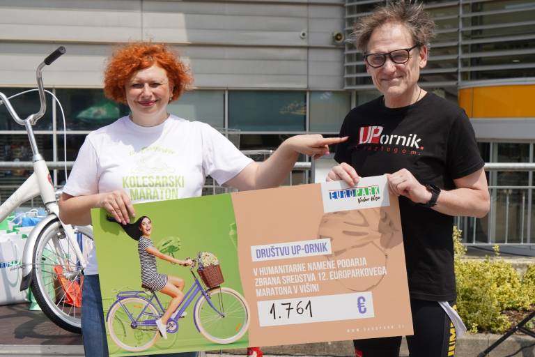 Z Europarkovo donacijo v višini 1000 evrov in prijavninami so skupaj zbrali 1761 evrov, ki so jih podarili društvu UP-ornik.