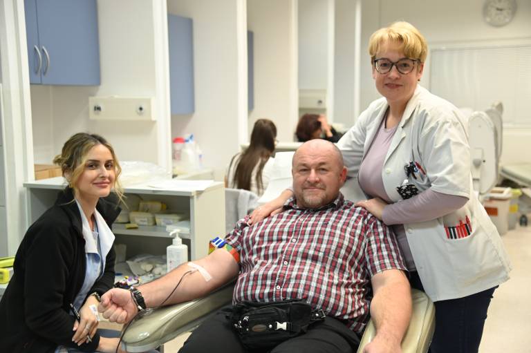 Včeraj so v Centru za transfuzijsko medicino UKC Maribor gostili krvodajalca stokratnika. Kri je že stotič daroval Marko Korošec iz Poljčan. Prvič je v Centru za transfuzijsko medicino daroval leta 1996.