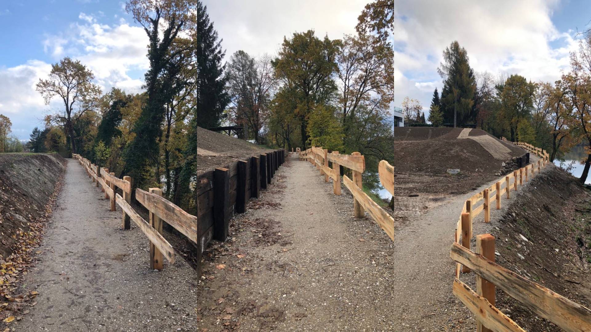 »Na določenih odsekih je zaradi večje varnosti pešcev postavljena lesena ograja. Ob trasi pešpoti sta bila postavljena tudi dva kompleta lesenih miz in klopi ter košev za smeti, ki se nahajata na predelu, kjer je omogočen pogled na reko Dravo, v poletnih dneh pa bo tam tudi prijetna senca,« še dodajajo na mariborski občini.