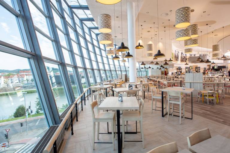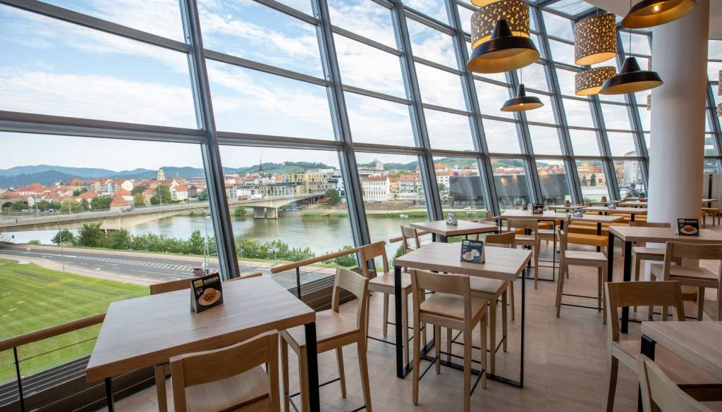 Moderno zasnovana restavracija gostom nudi prijetno vzdušje na stari lokaciji z razgledom na reko Dravo in slikovito kuliso starega mestnega jedra. Prenova je potekala z mislijo na okolje, saj v Sparu velik pomen dajejo trajnostnemu ravnanju in energetskim izboljšavam.