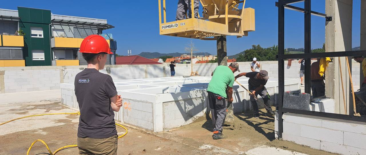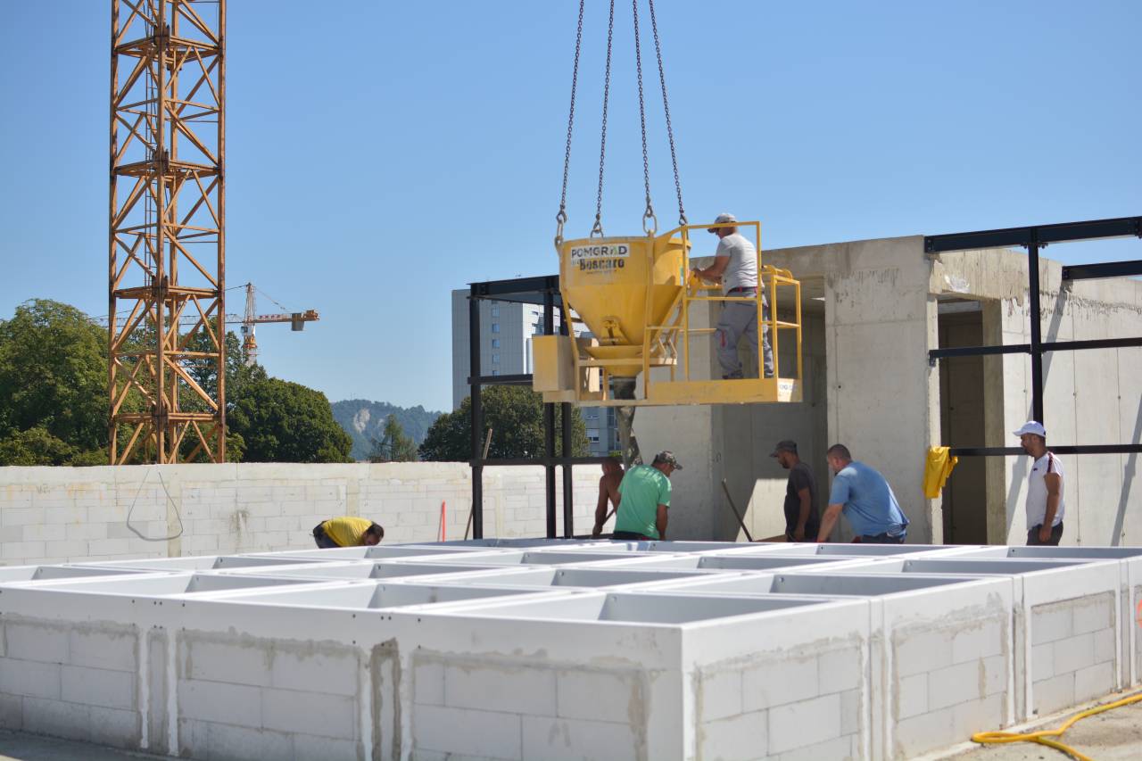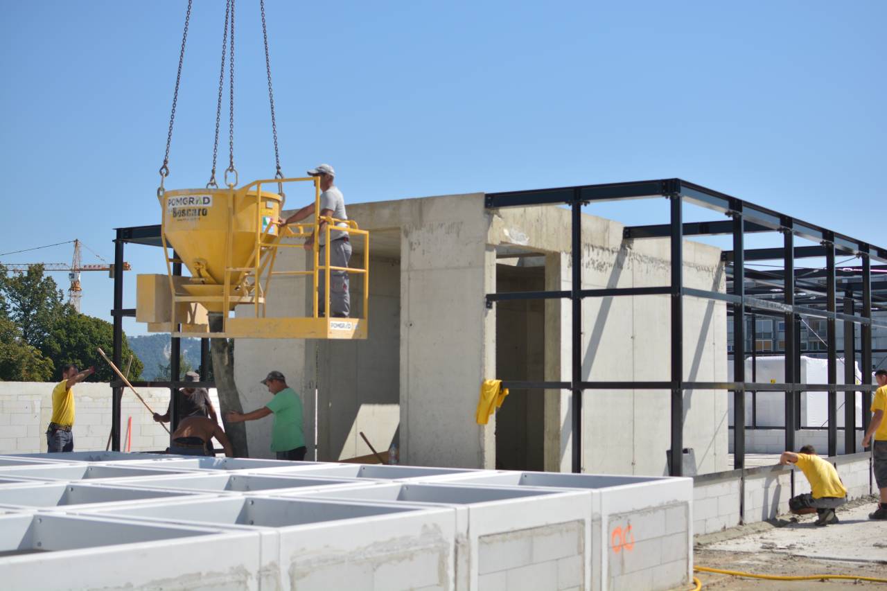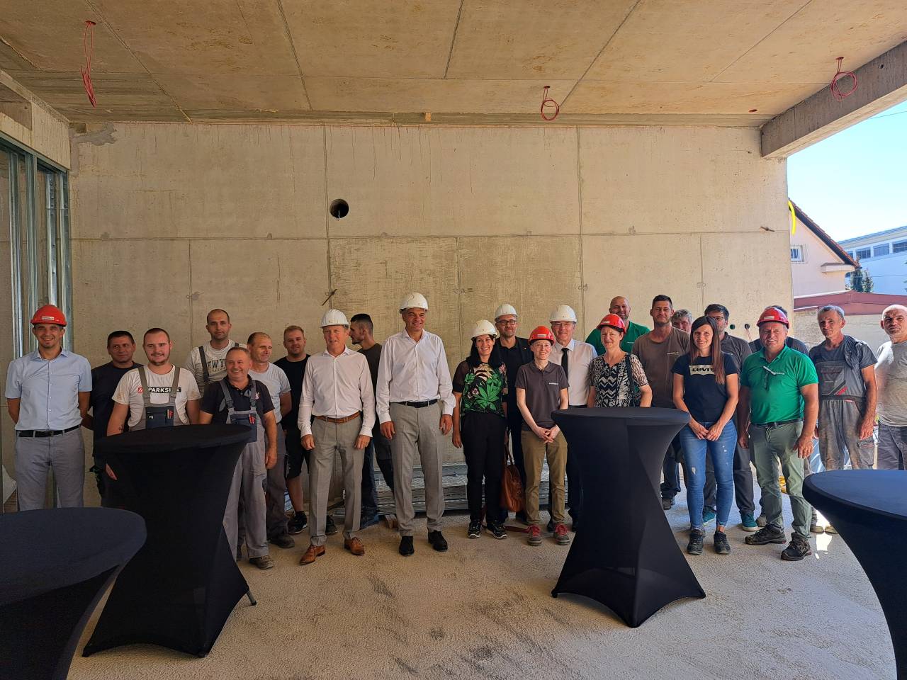 Gradbena dela, katerih izvajalec je podjetje Pomgrad, so zdaj dosegla pomemben mejnik – zaključilo se je betoniranje stropne plošče nad zadnjim nadstropjem. Ob tej prelomnici v gradnji nove zdravstvene postaje so pripravili »likof«.