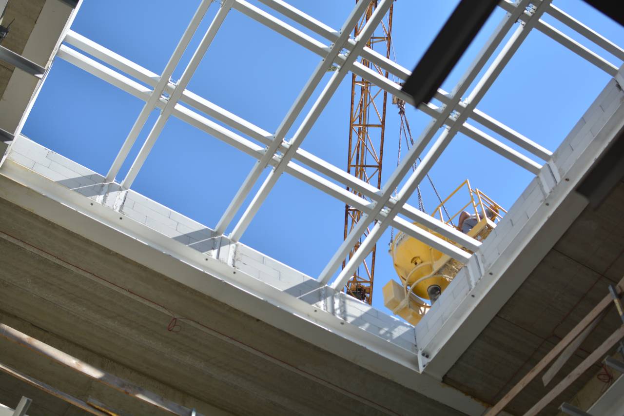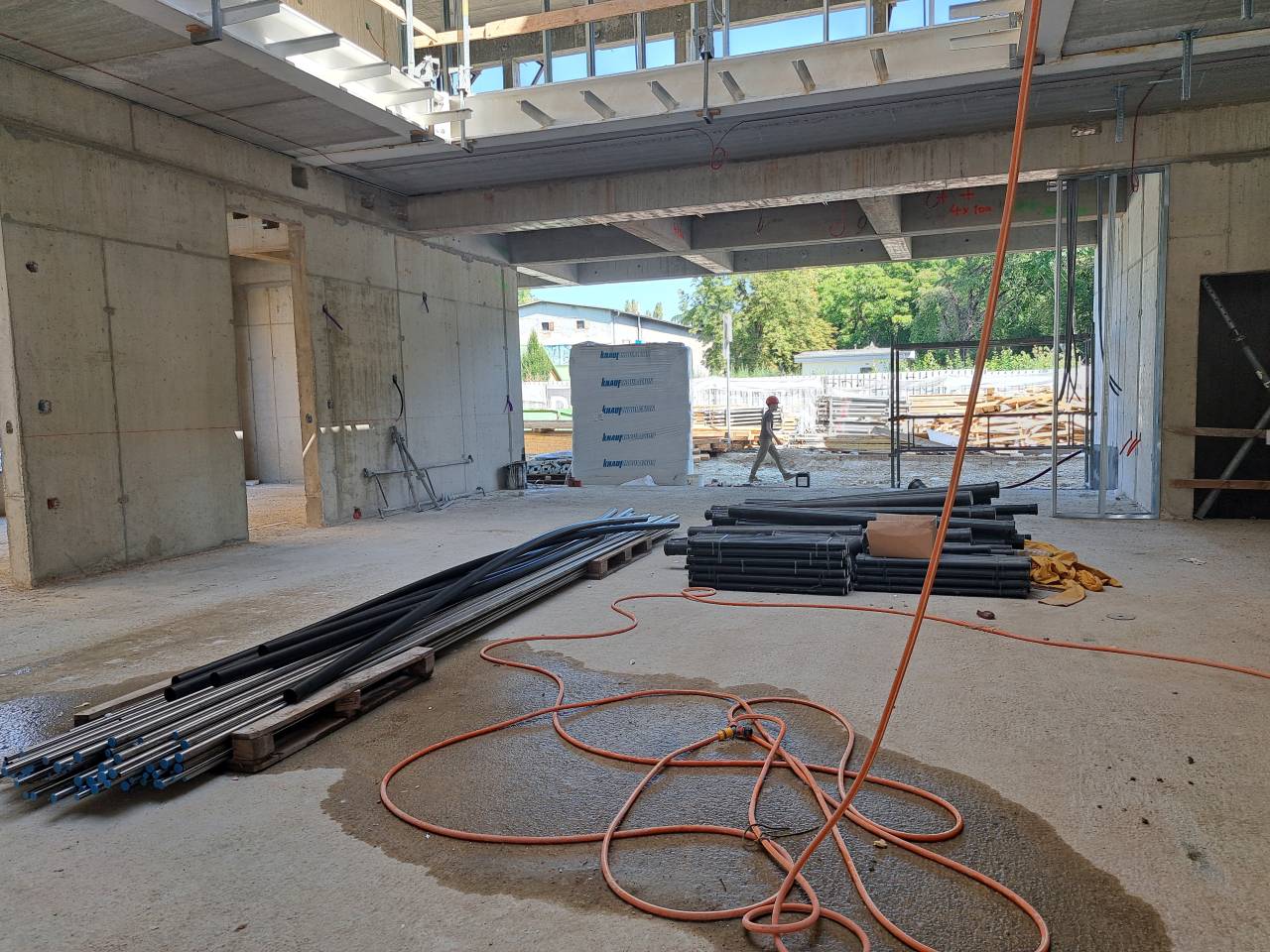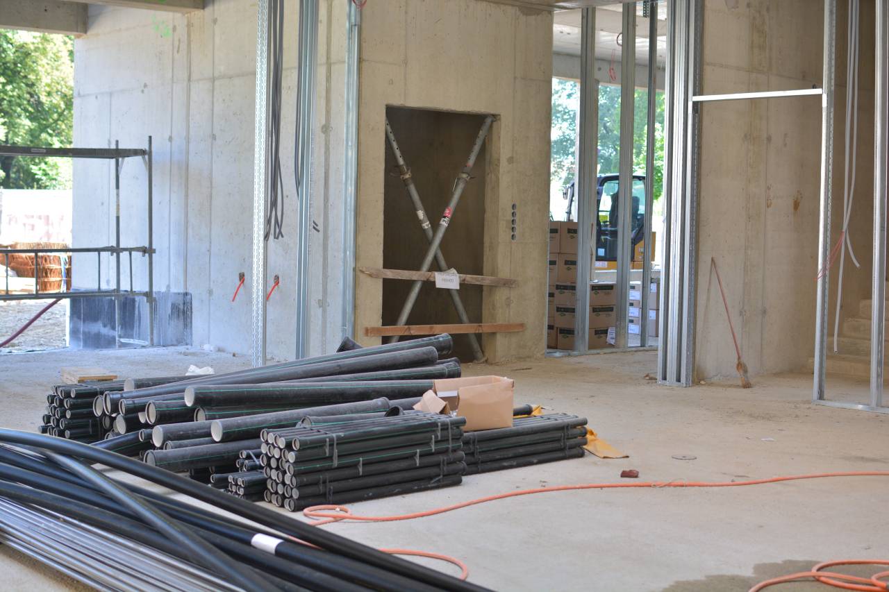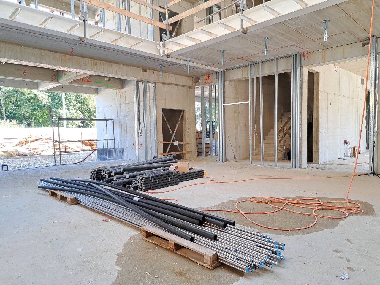 Trenutno se izvajajo fasaderska dela, v tem tednu se začnejo krovska dela, poteka tudi izvedba inštalacij: »Do sedaj se je mogoče več videlo navzven, zdaj se bo pa stavba zaprla in se bo bolj ali manj od znotraj dogajalo,« je povedala.
