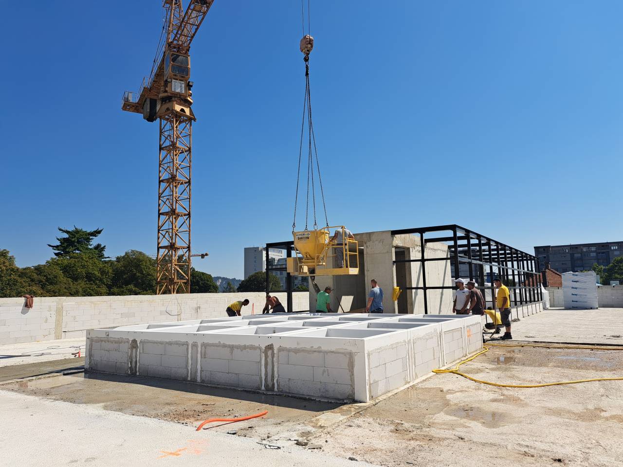 Gradnja nove zdravstvene postaje Magdalena na Jezdarski ulici poteka v skladu s časovnico. Danes so obeležili pomembno prelomnico v gradnji – zaključek betoniranja stropne plošče.