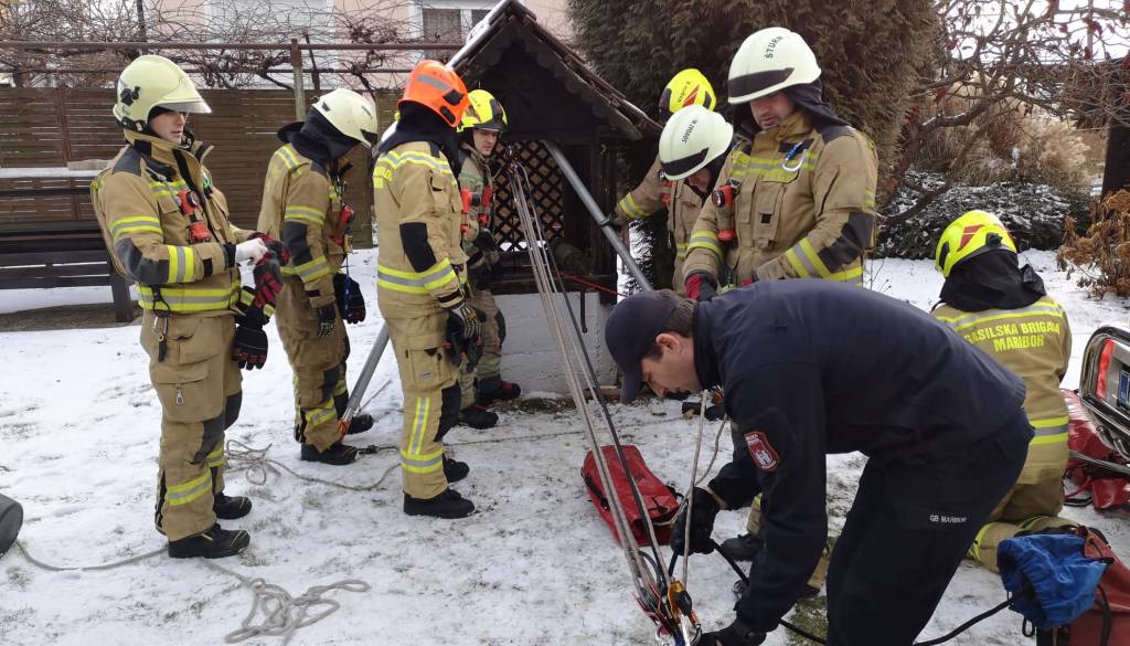 V Račah se je dopoldne odvijala posebna gasilska intervencija, v kateri je več gasilcev reševalo mačko, ki je padla v vodnjak.