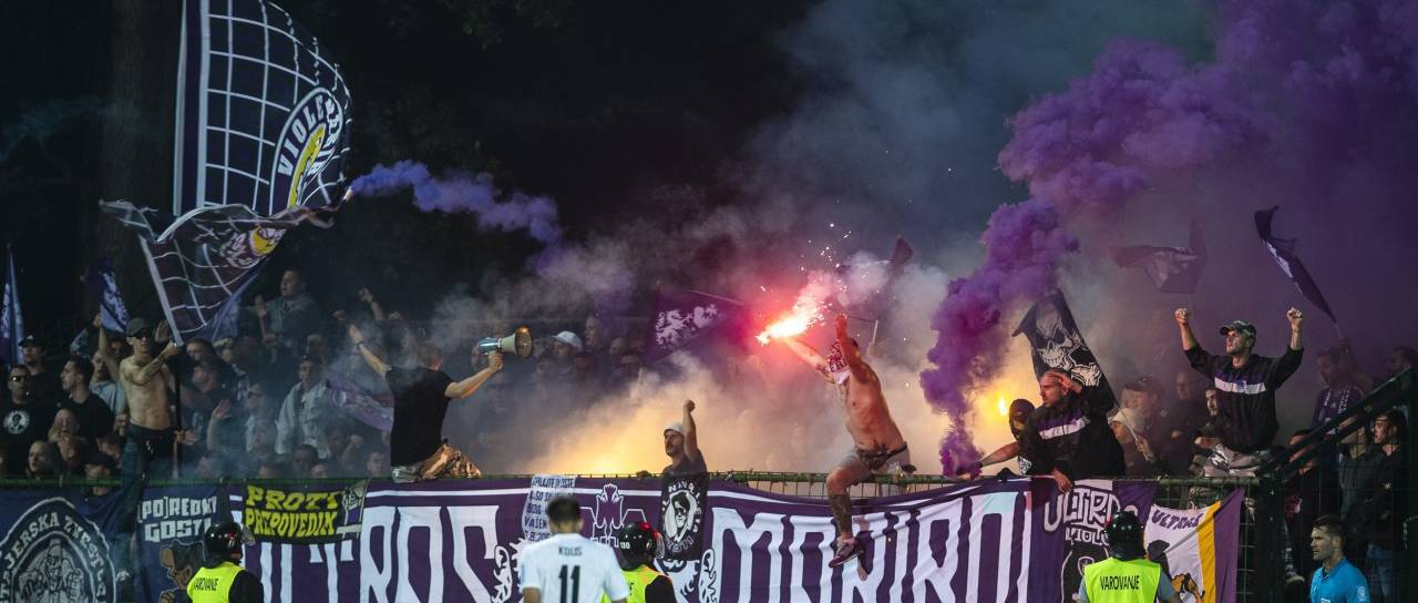 Vroče dogajanje je bilo tudi na tribunah. Tekmo so goreče spremljali pripadniki obeh organiziranih skupin - Black Gringosi in Viole. Pirotehnike ni manjkalo na niti eni strani, Gringosi pa so vijoličaste zbodli s posebnim transparentom.