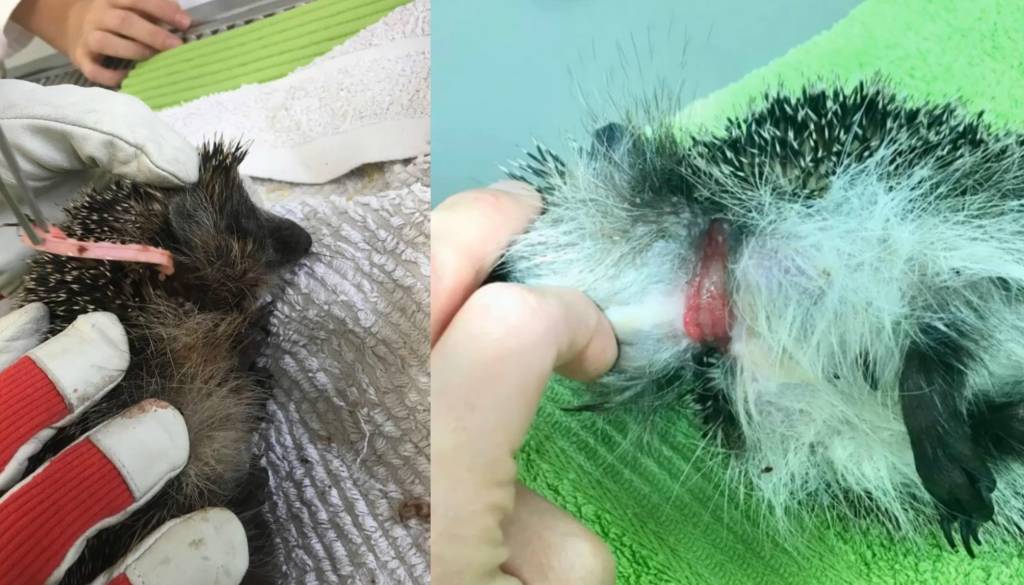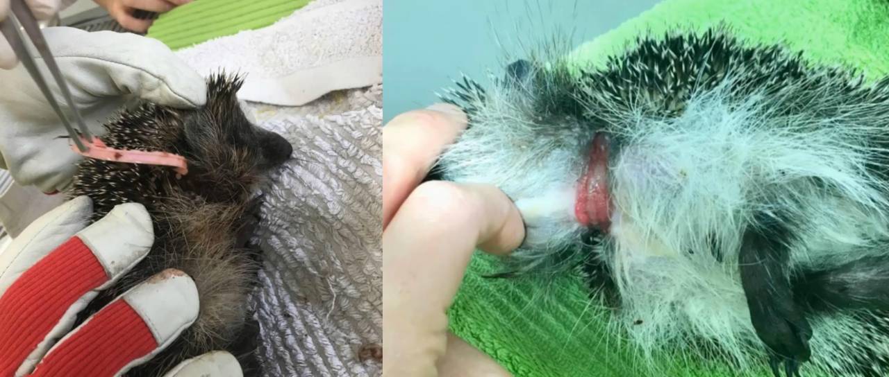 Ježek je imel namreč hudo gnojno rano na vratu, v kateri so že bile mušje ličinke. Vse to pa zaradi tega, ker se mu je okoli vratu zategnil plastičen obroček, ki se mu je celo vrastel.