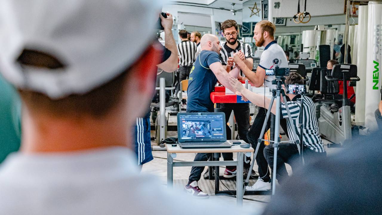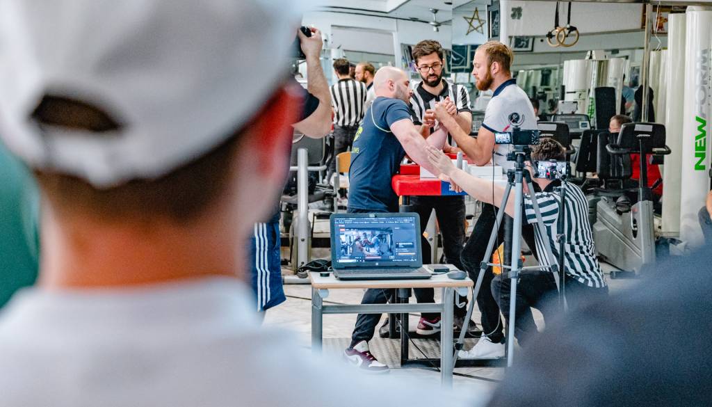 V fitnesu Top Power Studio so se danes zbrali tekmovalci v polaganju rok oziroma »armwrestlingu«.