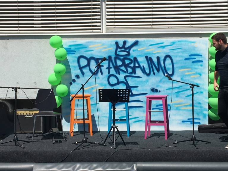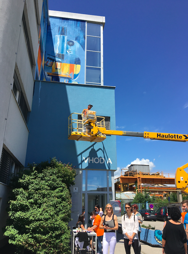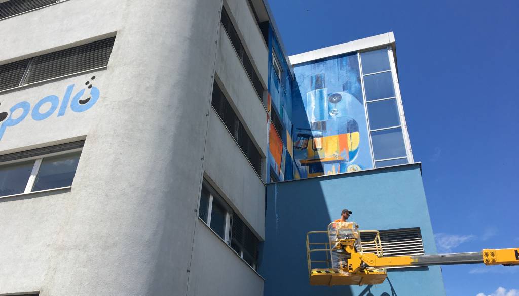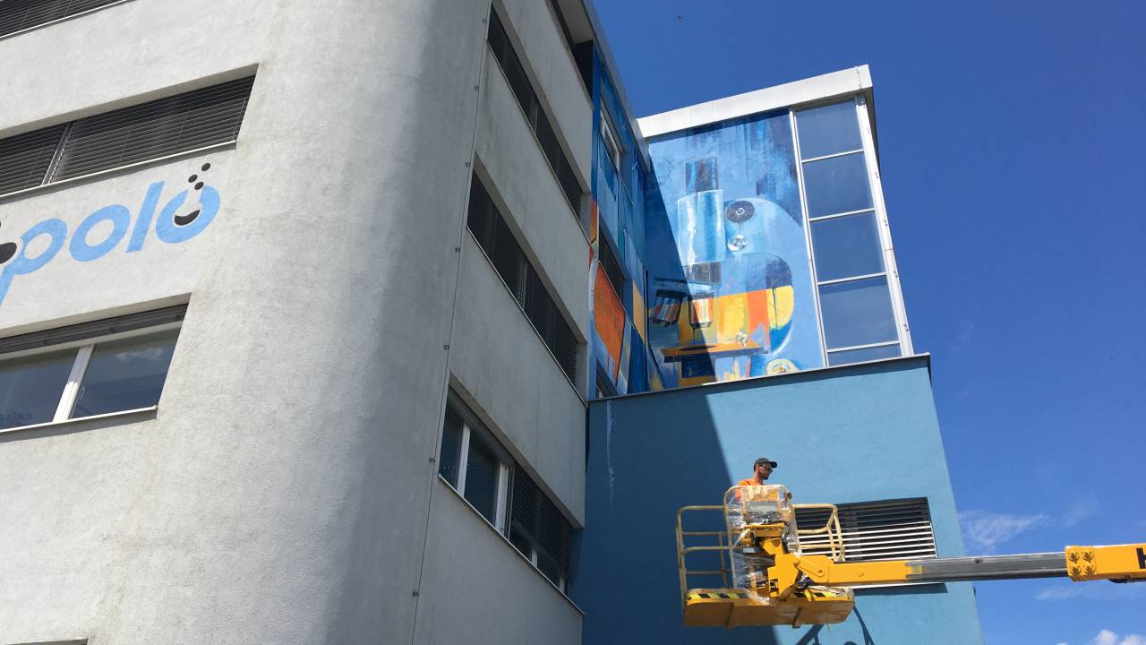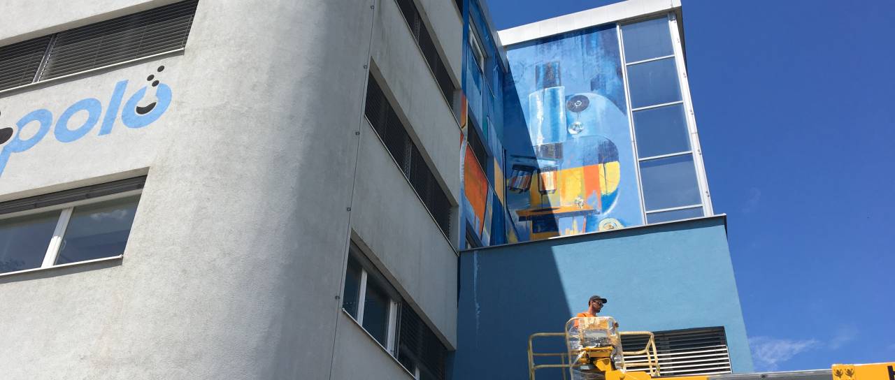 Grafitar Teo Ivančič – Teoson je od 15. junija grafitiral del petnadstropne severne stene podjetja, drugi grafitarji pa so danes poslikali betonska cvetlična korita pred podjetjem.