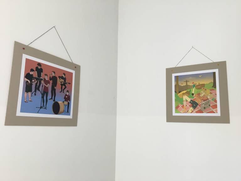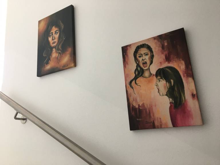 Dela mladih ustvarjalk Alje Horvat, Mance Matelič, ki je hči njihove sodelavke in je že oblikovala majico za kupce, in Aneje Založnik, ki ustvarja v tehniki olje na platno, so razstavili v prostorih podjetja Mikro+Polo.