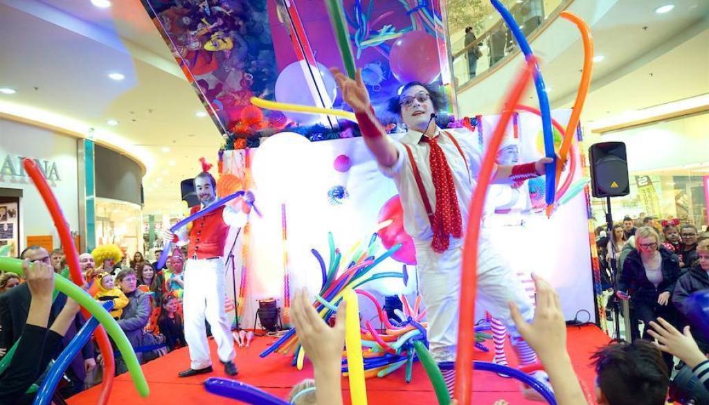 Pisane, vesele in norčave pustne maske so zavzele osrednji prireditveni prostor, pri čemer so se odlično zabavale. V domišljijsko deželo jih je namreč popeljala žonglerska in ognjena skupina Čupakabra, ki je s hojo na hoduljah, z žongliranjem ter pisanimi baloni in žogami pričarala pravo cirkuško vzdušje.