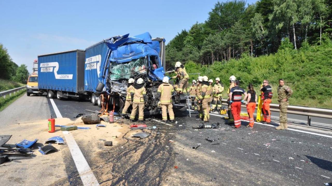 Okoli 9. ure sta na avtocesti Celje - Maribor, pred izvozom Slovenska Bistrica jug, trčili tovorni vozili. Gasilci PGD Slovenjske Konjice so zavarovali kraj prometne nesreče, s tehničnim posegom iz vozila rešili eno osebo, pomagali reševalni službi, voziloma odklopili akumulatorja, preprečili iztekanje nevarnih snovi in posipali iztekle tekočine. Poškodovano osebo so reševalci NMP Slovenska Bistrica odpeljali v UKC Maribor.