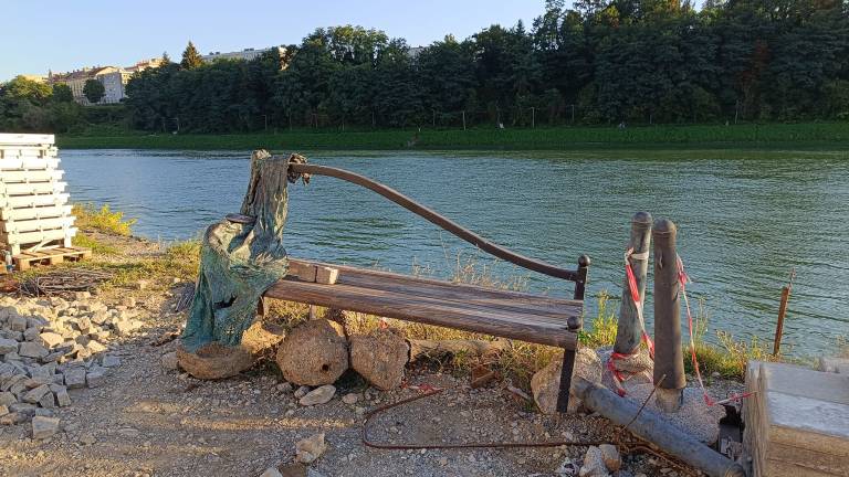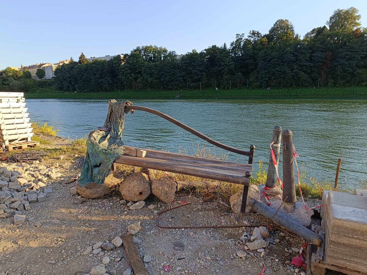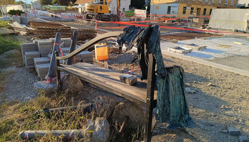 Avtorica klopi je v petek ob obisku Lenta zgrožena ugotovila, da njene klopi več ni na svoji lokaciji. Našli so jo na kupu kamenja sredi gradbišča, v nevarni bližini reke Drave.