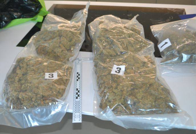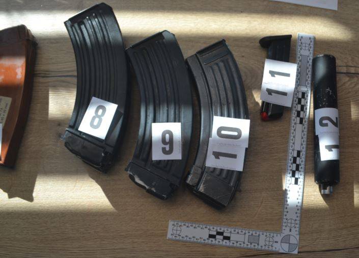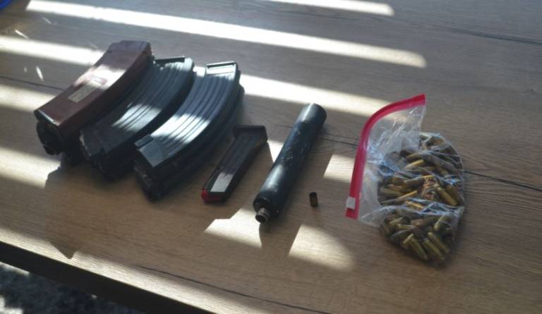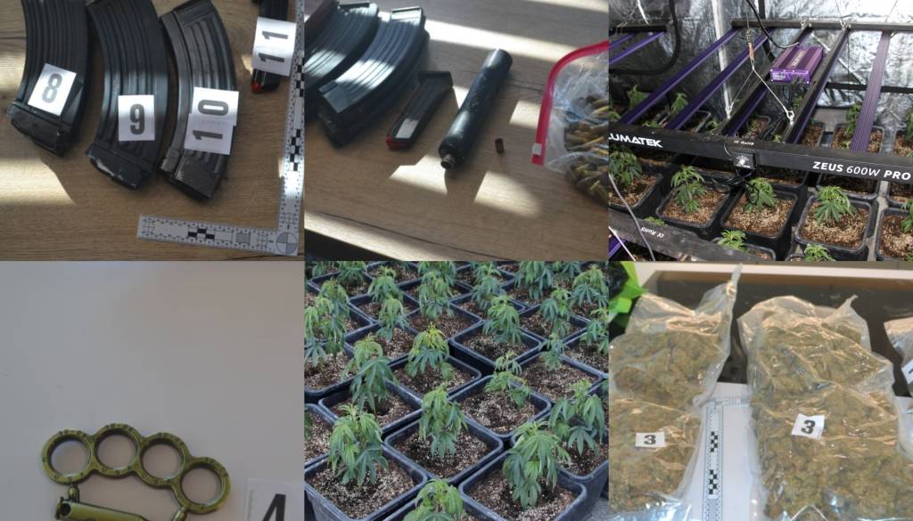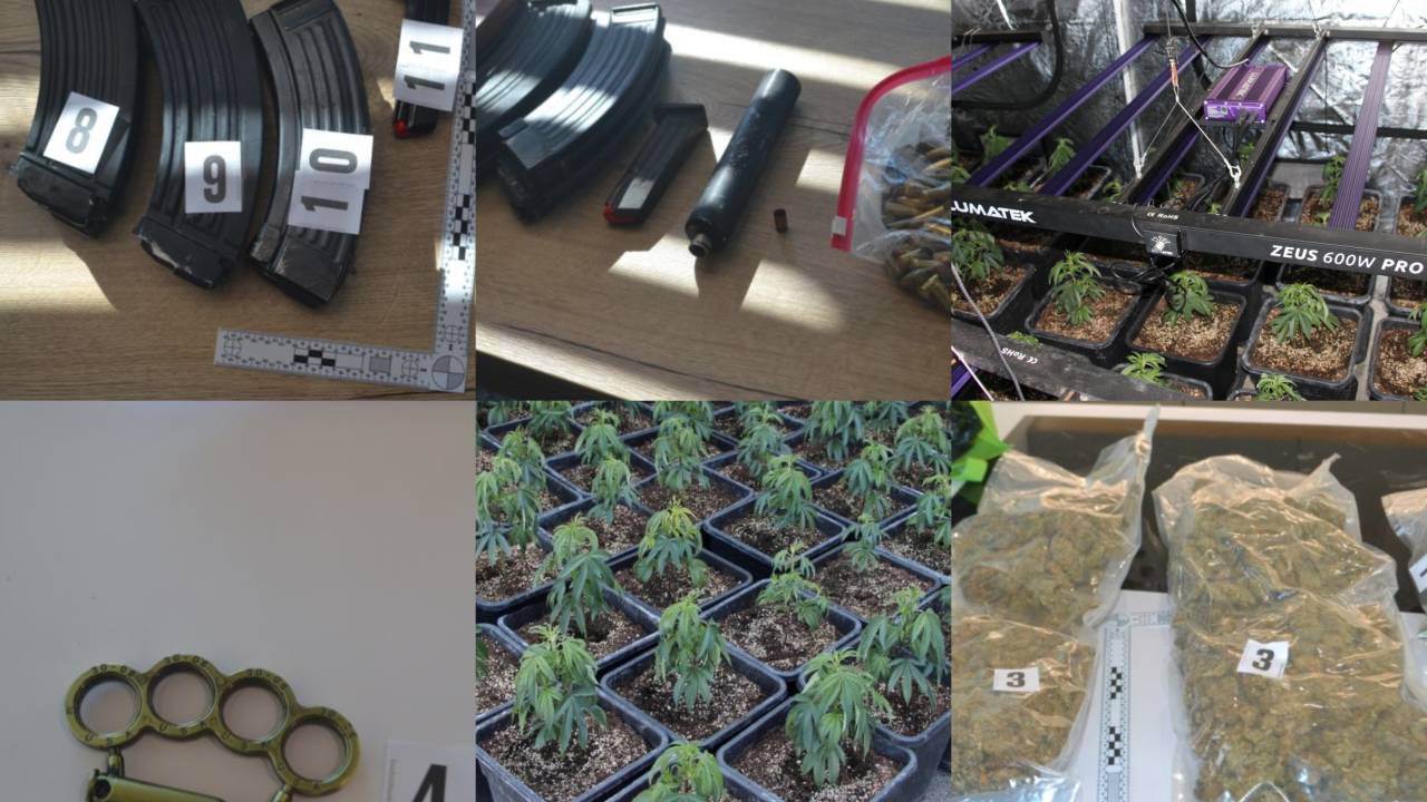 Pri enem so zasegli dobra dva kilograma posušenih vršičkov konoplje, več kot 130 nabojev, dušilec, več nabojnikov za puško in enega za pištolo, večjo vsoto denarja in kovinski bokser.