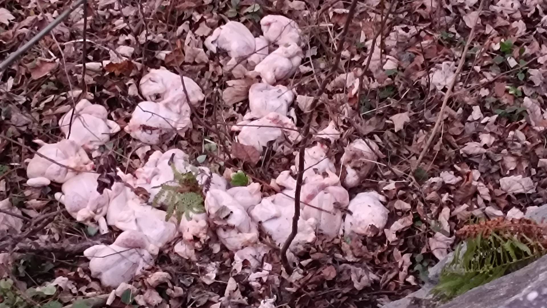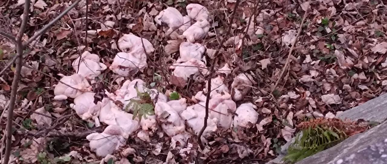 Bralka Mariborinfo je v gozdu naletela na neprijetno presenečenje. Kot nam je povedala, je včeraj med polnočjo in 9. uro zjutraj nekdo na Rošpohu v gozd ob cesti odvrgel najmanj 30 mrtvih in že očiščenih piščancev.