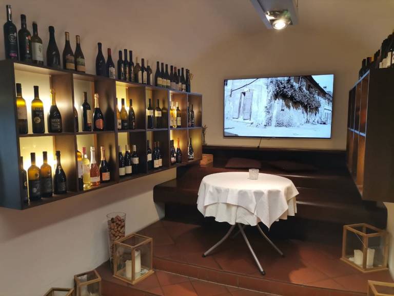 »In sicer je to steklenička napolnjena z vinom najstarejše trte. Kot vidite, je takšne zelo posebne oblike, in marsikdaj gostje pravijo, kako zanimivo je, da se ne more prevreči,« je obiskovalcem razlagala zaposlena.