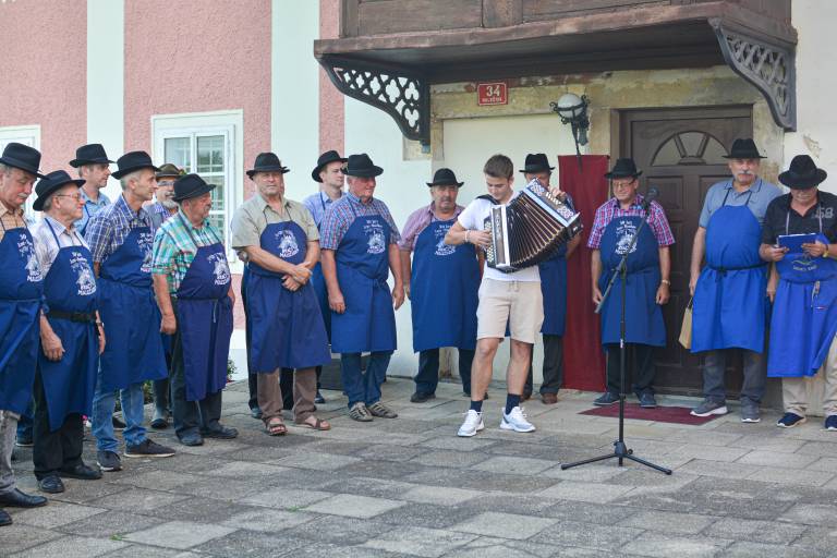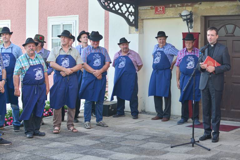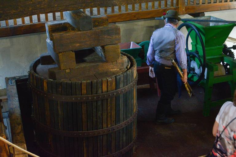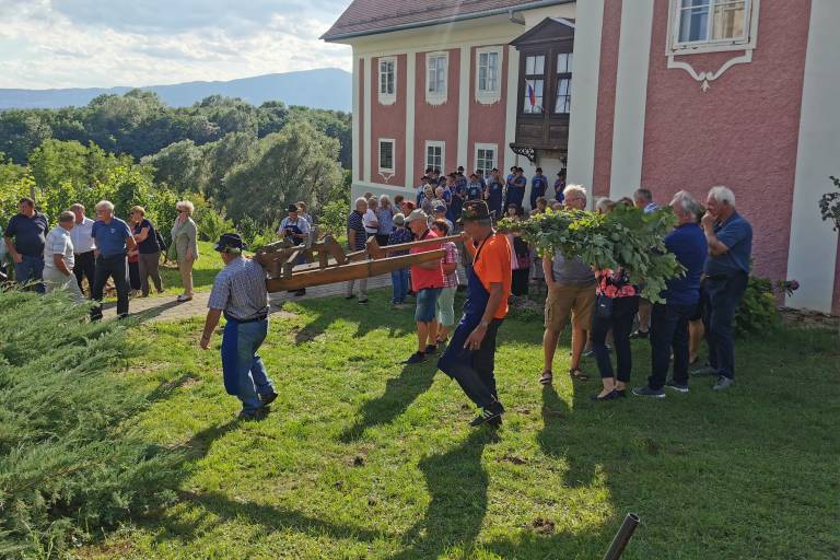 Dogajanje se je nato preselilo na drugo stran župnijske stavbe, kjer je sledila otvoritev prenovljene lesene preše. Ta ima na prešpanu vrezano letnico 1840.